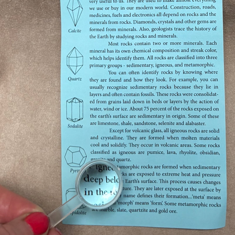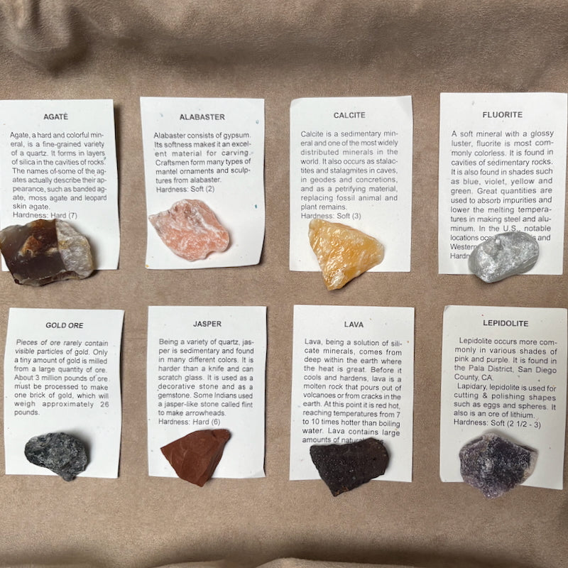 A perfect starter kit for young (or old) mineral collectors, with 15 labeled rock and mineral specimens. A small magnifier and an information sheet is included. The kit includes: