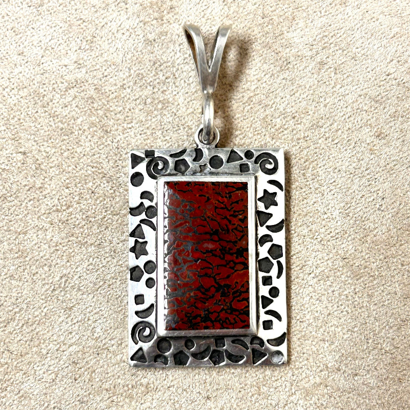 The pendant without the bail measures 1.1" x 0.8" x 0.2" in depth (28mm x 20mm x 4mm).
