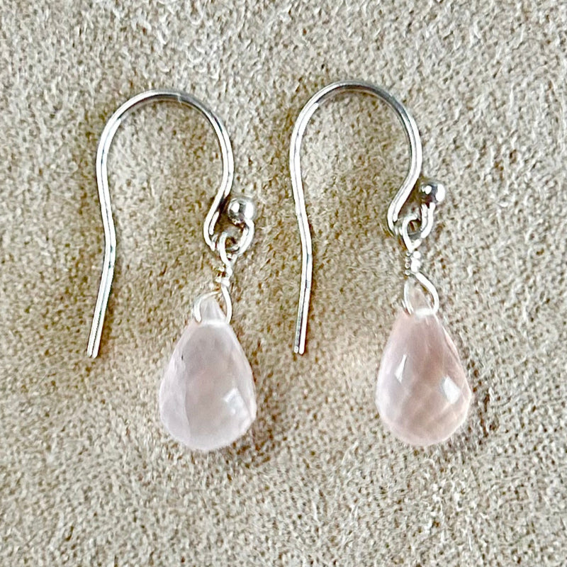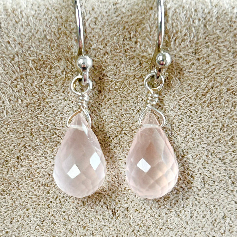 Rose quartz briolettes are strung on sterling silver with sterling silver ear wires.