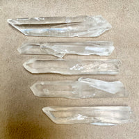 These crystal clear elongated quartz crystals are usually referred to as "ice crystal wands;" they are from Arkansas. Great for use with crystal grids, altars, or other metaphysical work.