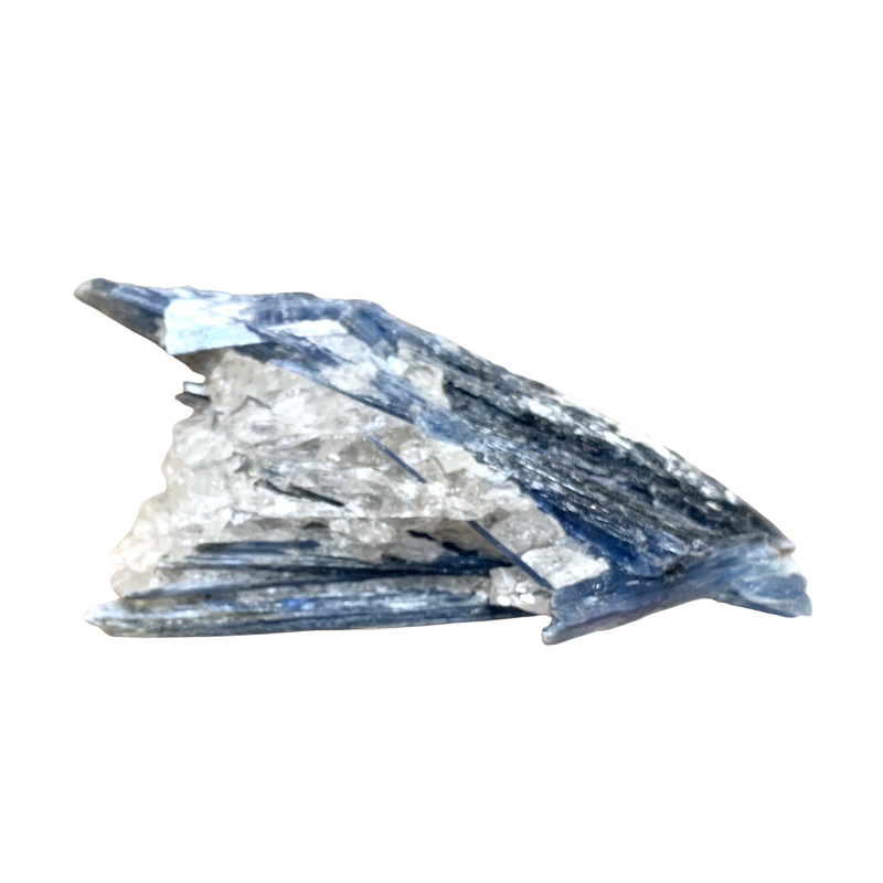 A cluster of blade-like frosty blue kyanite crystals mixed with quartz; from Brazil.
