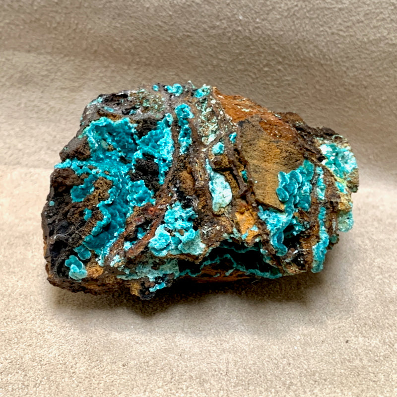 Rosasite with goethite, malachite and aurichalcite, from the Mina Ojuela, Mapimi, Durango, Mexico