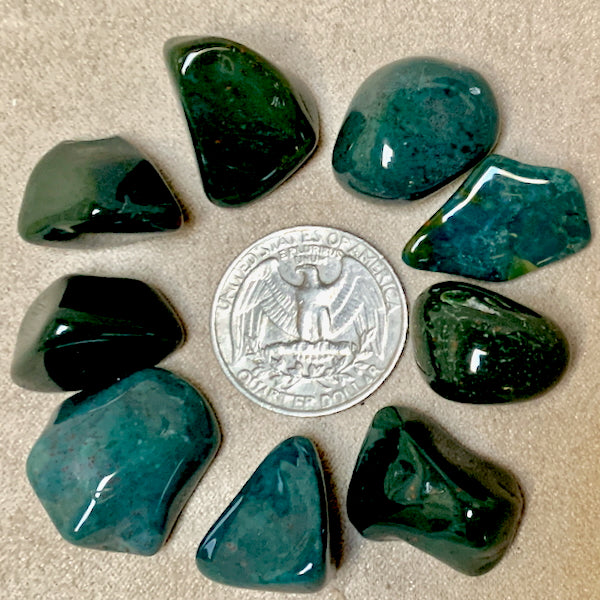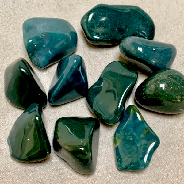 Deep green bloodstone (a variety of jasper) has interspersed small patches of red jasper.