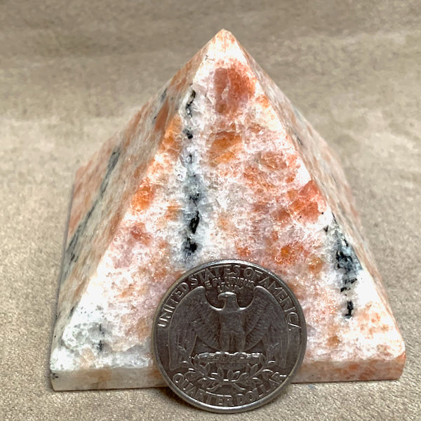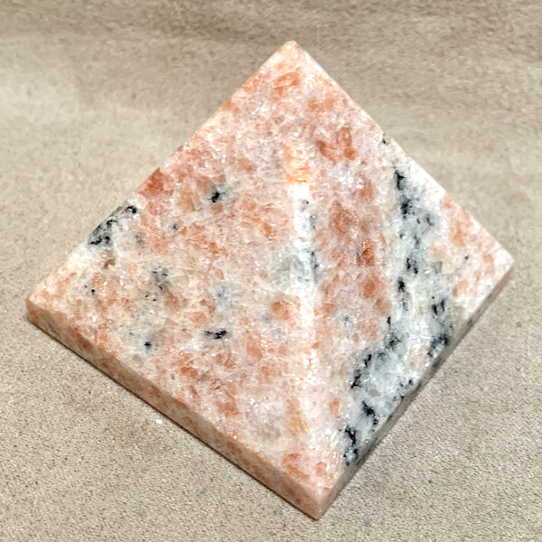 A beautiful, polished sunstone "pyramid" with a square base. The sunstone is from India.