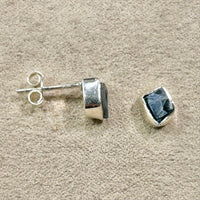 Small pieces of pietersite are bezel set in sterling silver. Pietersite is similar to tigers eye, appearing to be a mix of golden and/or blue/black and/or red tiger-eye. Posts.