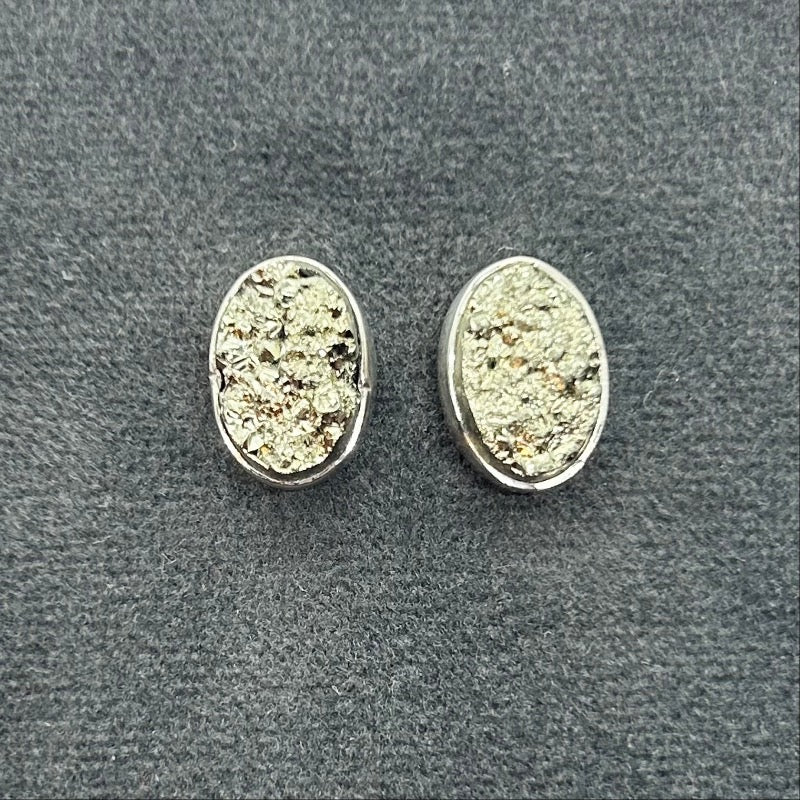 Rough pieces of pyrite (fools gold) are bezel set in sterling silver. Sterling silver posts.